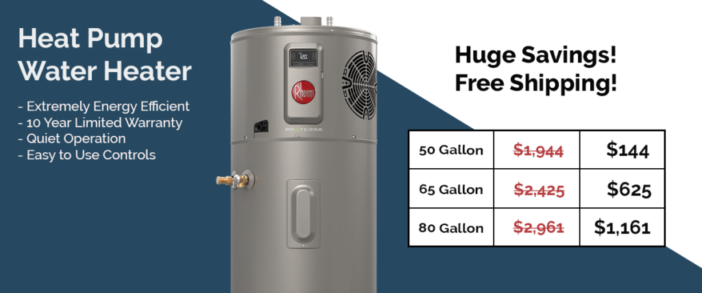 50 Gallon Rheem Heat Pump Water Heater: $144 (was $1,944)